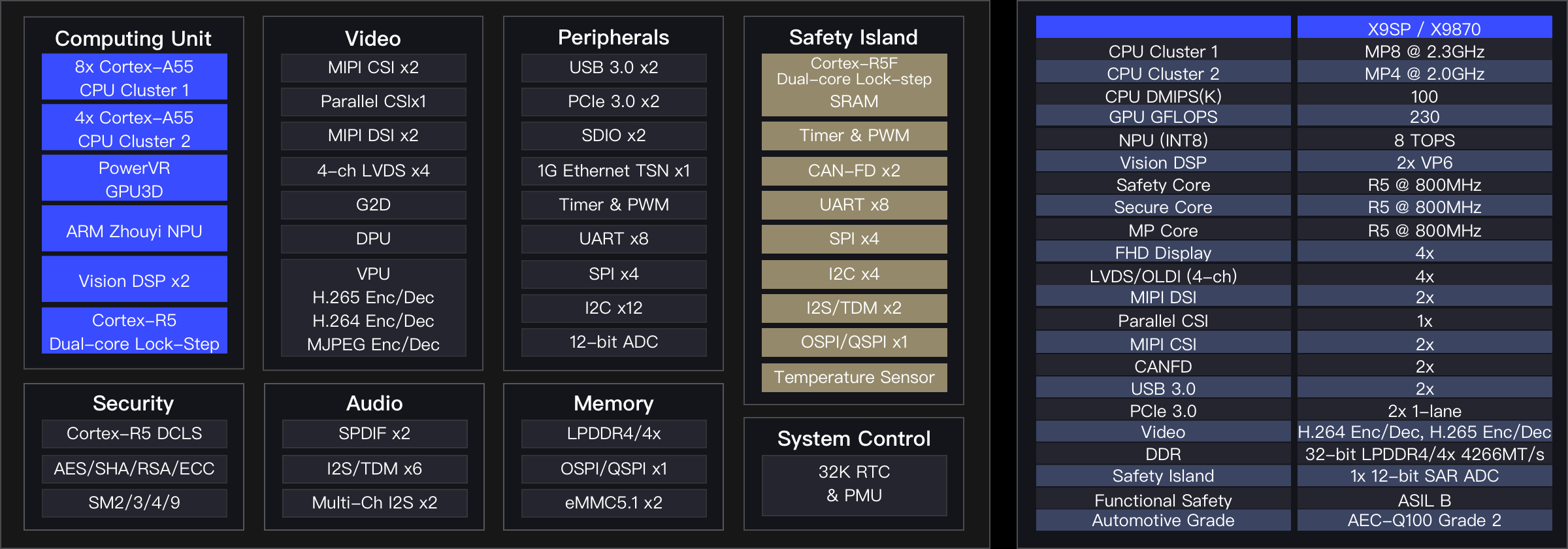 By virtue of the true hardware-isolated architecture and hardware Hypervisor technology of X9SP, SemiDrive provides a single-chip solution for e-cockpit domain controller.