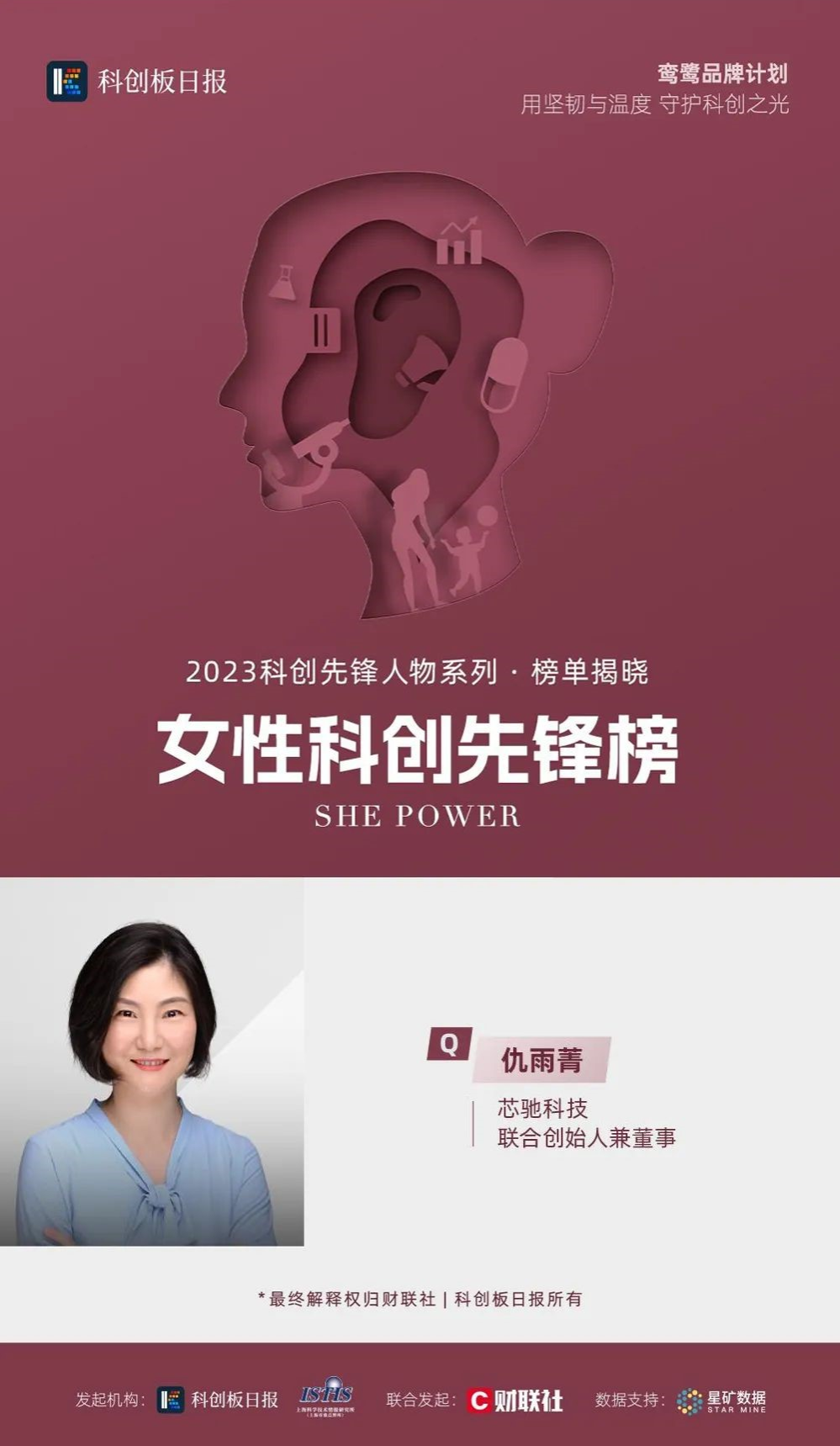 9月,《科创板日报》“2023科创先锋人物榜单”公布,芯驰科技联合创始人兼董事仇雨菁女士登上「女性科创先锋榜」,被评为15位推动中国科创事业发展的女性先锋之一。